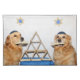This placemat features golden retrievers building a house of Matzo for Passover.