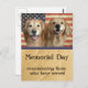 This design features two golden retriever dogs with an American flag in the background. The text reads: "Memorial Day -- remembering those who have served."