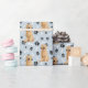 Golden Retriever Paw Print Pattern on Silver Blue Wrapping Paper
