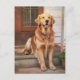 This postcard features a handsome golden retriever waiting for his owner to come home.