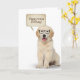Cute golden retriever puppy wearing glasses on white with speech bubble for 102nd birthday.