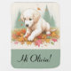 This soft and cuddly baby blanket features a photo of a fluffy golden retriever puppy dog playfully laying in a pile of colorful autumn leaves. The blanket is perfect for keeping your baby warm and cozy all year long.