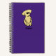 This simple, purple notebook features an illustration of a cute, golden retriever sitting and looking at the viewer. Below, you are able to add your own name. This makes for a fun, modern design and a great, personalized, custom gift for any time of the year.