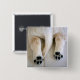 Looking down on back end of tiny Golden Retriever puppy, with cute fluffy tail and black paw pads.