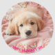 Celebrate love with this adorable Valentine's Day design featuring a sweet golden retriever puppy resting on a bed of pink roses, surrounded by delicate butterflies. This heartwarming image captures the essence of romance and affection, making it the perfect present for dog lovers and those who cherish cute and cuddly moments.