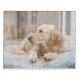 Acrylic jigsaw puzzle of a beautiful golden retriever resting on her pillow at home.