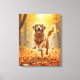 Golden Retriever Running In Autumn Woods Canvas Print