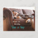 Don't worry about your problems--just take a nap instead! This postcard features a photograph of a golden retriever dog sleeping on a couch, under a fuzzy leopard print blanket.