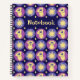 This is a whimsical notebook for any dog lover. It features a polka dot pattern of pink and purple circles with golden diamonds in between against a dark blue background. At the center of each polka dot is either a smiley, adorable golden retriever or a whimsical sun. There is a spot of the front that says, "Notebook," but you have the option to change the text if you like. Don't forget that the entire notebook is customizable, so be sure to pick from a soft or hard cover, pick your interior page design, and pick the color of your spiral. All elements of this pattern, I have hand-drawn.