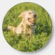 Wireless charger with an image of a Golden Retriever retrieving a ball in lush fields.