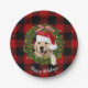 Golden retriever wreath on buffalo plaid paper plates