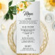 Elevate your wedding feast with this radiant silver menu adorned with a captivating bouquet of yellow roses. Your guests will be delighted as they are greeted by this elegant silver menu with the charming yellow roses, symbolizing joy and optimism. More than just a list of dishes, this menu tells the story of your culinary celebration. Each course, from the delectable appetizers to the decadent dessert, is meticulously printed in an elegant text, reflecting the formality of your occasion. This beautiful keepsake will remind guests of the delicious flavors and warm memories shared on your special day, long after the last bite is taken. Let your wedding menu be a radiant reflection of your happiness, blooming with sunshine and silver elegance.