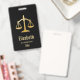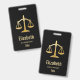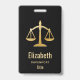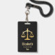 Personalized name badge with an image of golden scales on a black background. Simple and elegant.