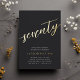 Celebrate her milestone birthday with these chic 70th birthday party invitations featuring "seventy" in modern gold foil hand sketched script lettering. Personalize with your party details beneath. A unforgettable, luxe choice for fabulous 70th birthday celebrations.