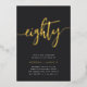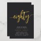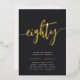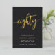 Celebrate her milestone birthday with these chic 80th birthday party invitations featuring "eighty" in modern gold foil hand sketched script lettering. Personalize with your party details beneath. A unforgettable, luxe choice for fabulous 80th birthday celebrations.