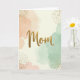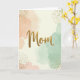 Designed with a softly romantic touch, the card centers on one large word in shimmering gold lettering that catches the light like tiny grains of glitter. Behind it, a calm wash of muted peach drifts into gentle sage green, forming cloud-like shapes over a creamy off-white background. The airy color blending creates a quiet, intimate space, like two close friends sharing a tender moment without needing many words ❤️. Small golden specks scatter mostly around the edges and corners, adding a light sprinkle of celebration without crowding the main word. The main word sits in the middle, while any smaller text is kept minimal and placed below it in a simple, darker tone for easy reading. The overall palette stays soft and soothing, with the gold details adding a warm glow that feels like a thoughtful embrace 🌼. In the corners, the gold flecks cluster more densely, with a few drifting inward toward the center.