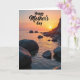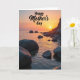 On the front of the card a calm seaside scene stretches out at dawn or dusk, with smooth, water-worn rocks resting in shallow water like quiet companions. A rugged cliff rises along the right edge, adding a steady, protective feel beside the open sea. The low sun sits in the upper-right, washing the sky in amber and fiery orange that softens into peach near the horizon. Its reflection lays a shimmering golden path across the ripples, as if the water is reaching forward with gentle affection ❤️. Dark, partially submerged boulders are outlined by bright highlights, creating a tender contrast between shadow and glow. Near the top center, the message “Happy Mother’s Day” appears in flowing cursive-style lettering in a deep, dark tone that stands out against the warm sky 🌼. The coastline fades into a luminous horizon while the sun’s light glitters between the rocks and the open water.