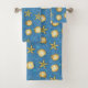 A Blue Bath Towel Set Designed In Golden Seashells And Starfish For The Bath