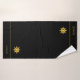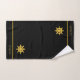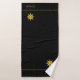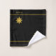 Elegant golden ship steering wheel on black Bath Towel Set. Text can be personalized.