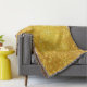 The Golden Snow Woven Throw Blanket features a rich golden backdrop layered with luminous snowflakes in varying sizes, delicate flurries, and soft glowing light accents. The design feels like snowfall illuminated by candlelight — festive, cozy, and quietly luxurious.