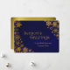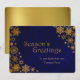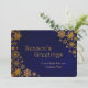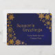 Elegant flat style Christmas greeting card done in a dark blue grunge background, with rich golden looking snowflakes, on the left and right sides of the card. Gold tone graphic text reads Season's Greetings. Personalize the golden yellow text, on the bottom of the card to suit your company needs.