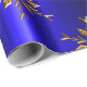 A colorful, elegant Christmas wrapping paper featuring a festive pattern of golden snowflakes (or stars) set over a vivid, royal blue background to add a special designer touch to your gift wrapping these holidays.