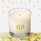 Simple, elegant 60th Birthday and golden star silhouettes on transparent Scented Candle. Text can be personalized for any age 20th, 30th, 45, 50th, 80th... Birthday, Anniversary and more. This candle makes a great present!