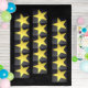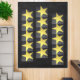 The artwork is of a pattern of golden stars on textured black color. It is formal and modern looking - making it suitable for many of your unique spaces.