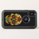 Black iPhone X Otterbox brand case with graphics of a golden sugar skull with colorful flowers. Customize this case to add your own text. Chose the device you want before ordering.
