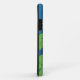 A bright, attractive case-mate 'Barely There' to protect your iPhone, with a golden yellow sunflower on a deep blue background, from a screenprint by Judy Adamson.