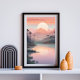 Immerse yourself in the calm beauty of this golden sunrise landscape. Layers of misty mountains are bathed in soft pinks, purples, and golden hues, reflecting perfectly in a tranquil lake below. The subtle gradients and minimalist composition make this piece ideal for modern interiors, bringing a peaceful and elegant vibe to any space.