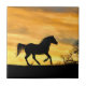 A beautiful golden sunlit morning with a pretty running horse silhouetted by the light. A beautiful horse country art tile. Makes a great gift for the horse lover or country home.
