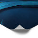 Captured at the golden hour, this stunning image features a woman adorned in a vibrant turquoise headwrap, its fabric woven with intricate golden patterns. The headwrap is complemented by her elegant, dangling earrings and a necklace that lie gracefully upon her shoulders, each piece encrusted with stones that match the wrap's rich hue. Her poised profile is a silhouette against the warm glow of the sunset, which kisses the horizon where the sea meets the sky. The woman's makeup, with its smokey eyes and deep red lips, adds a touch of classic glamour to her strikingly modern visage, creating a harmonious blend of tradition and contemporary elegance.