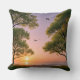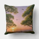 Golden Sunset Ocean Beach Landscape with Trees Throw Pillow