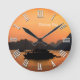 Wall Clock: Golden sunset reflecting on water like a gold glitter sparks. A beautiful scenery from Halong Bay of the north Vietnam. Mesmerizing panorama set between rocky hills, pirate ships and colors of nature. Original Photography/Art/Design by work4dream.