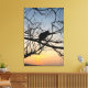 Golden Sunset Silhouette: Bird on Tree Branches Canvas Print