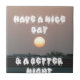 Charming Text: The phrase "Have a nice day and a better night" is elegantly displayed in fancy lettering, adding a touch of sophistication to the design.