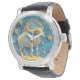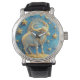 Golden Taurus Symbol On Blue Circle Watch