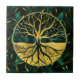 Golden Tree of Life Yggdrasil on Malachite Tile