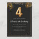 Golden Tropical Palm Leaves 4th Birthday Invitation