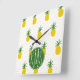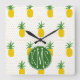 Golden Tropical Pineapples | Monogram Square Wall Clock