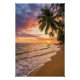 Transform your space with this Golden Tropical Sunset Beach poster, capturing a serene tropical shoreline illuminated by warm sunset tones. Graceful palm trees, gentle ocean waves, and a glowing sky combine to create a calming and immersive coastal scene.