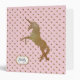 Pretty pink scrapbook photo album, with graphics of gold glitter polka dots and a golden glittery unicorn, on the front. Personalize the black fancy text, in the gold and white plaque, to suit your needs. Great gift idea for any young girl to use for, school, photos or as a scrapbook.