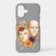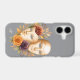 An artistic case featuring two golden Venetian-style masks surrounded by elegant roses in warm tones of amber, mauve, and peach, a symbol of mystery and beauty, personalized with a refined monogram.