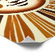 A radiant vintage sun with a smiling face, drawn in an Art Deco style. The sun's rays are wavy and alternating in length, resembling a bohemian aesthetic. The design features earthy tones like burnt orange, mustard yellow, and deep brown, with subtle textured shading to give it a handcrafted, aged look. Perfect for a retro wall art vibe.