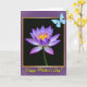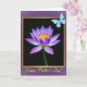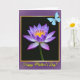 This design shows a glowing water flower opening in layered petals that shift from lavender and violet into soft white, with a sunny cluster of golden-yellow filaments at the center ❤️. Behind it sits a deep black background that makes the bloom look gently lit, like it’s floating in a quiet night scene. A thin gold border frames the flower, and beyond that frame is a muted purple area with a faint texture that adds depth without stealing focus. Near the upper right, a small winged insect in pale sky-blue hovers with fine vein lines, angled toward the blossom as if drawn in close. The pairing of the cool blue insect and the warm gold center creates a soft, friendly connection in the scene, like a shy greeting shared between companions 🌼. Along the lower portion beneath the framed image, a short message appears in flowing gold lettering, centered and easy to spot against the darker tones. The final detail is the way the gold frame catches the eye with a subtle shine against the surrounding purple field.