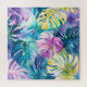 Lush paradise watercolor tropical leaves in shimmering gold, soft pink, and purple hues.