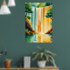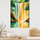 Golden Waterfall Painting with Rocky Surrounding Poster