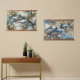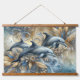 This set of two hanging tapestries brings together a pair of enchanting dolphin dreamscapes, each blending ocean life with intricate botanical elegance. In one design, dolphins glide through swirling waves framed by golden leaves and soft floral accents, while the companion piece carries the theme forward with luminous tones of teal, silver, and shimmering gold. Together, they create a harmonious balance of energy and tranquility, making them perfect for display side by side or in separate spaces for a cohesive decorative theme. The flowing curves, delicate details, and ocean-inspired palettes evoke feelings of freedom, serenity, and natural wonder. Ideal for ocean lovers, coastal interiors, or anyone drawn to imaginative marine beauty, this set captures both movement and stillness in equal measure. AI generated artwork.