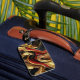 A digital art piece featuring flowing waves in gold, red, and black colors. The intricate design creates a sense of depth and movement.